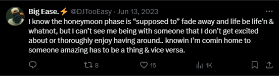 Here’s what I’ve discovered though – these (mostly woman) authors, who write these books that I can’t put down, have done me a disservice. The content I’m consuming, whether through literature or television, has largely warped my view on romantic love. Not because the love they’re describing is impossible to attain in our non-fictional world, but because…. Here’s the kicker, are you ready?