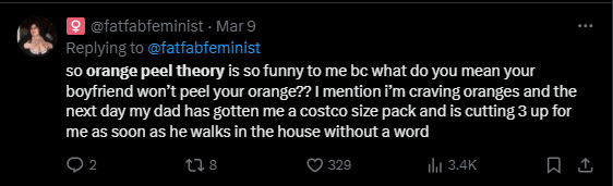 Not to mention acts of service. The orange peel theory?